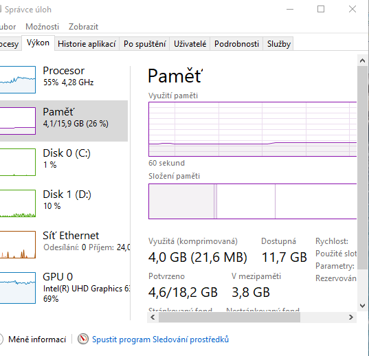 Otevři správce úloh a sleduj využití RAM. Pokud vystřelí na 100%, nejspíš by to chtělo pár GB přikoupit.