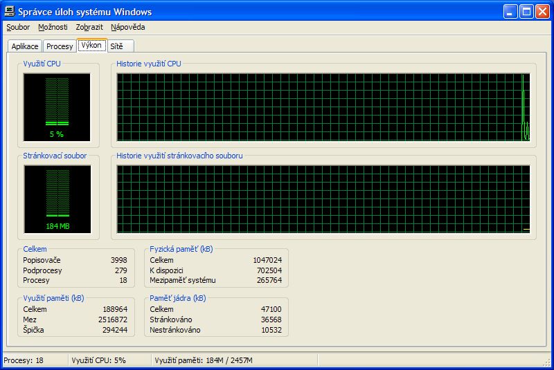 Mám všechny aktualizace na SP3 a všechny frameworky pro XP. Antivir MSE zabíral cca 100MB + když scanoval nebo jen škodil systému, tak zabíral až 300MB. Teď si to hlídám bez něj a jsem spokojen, protože stejně nic nezachytil, akorát vytěžoval CPU.