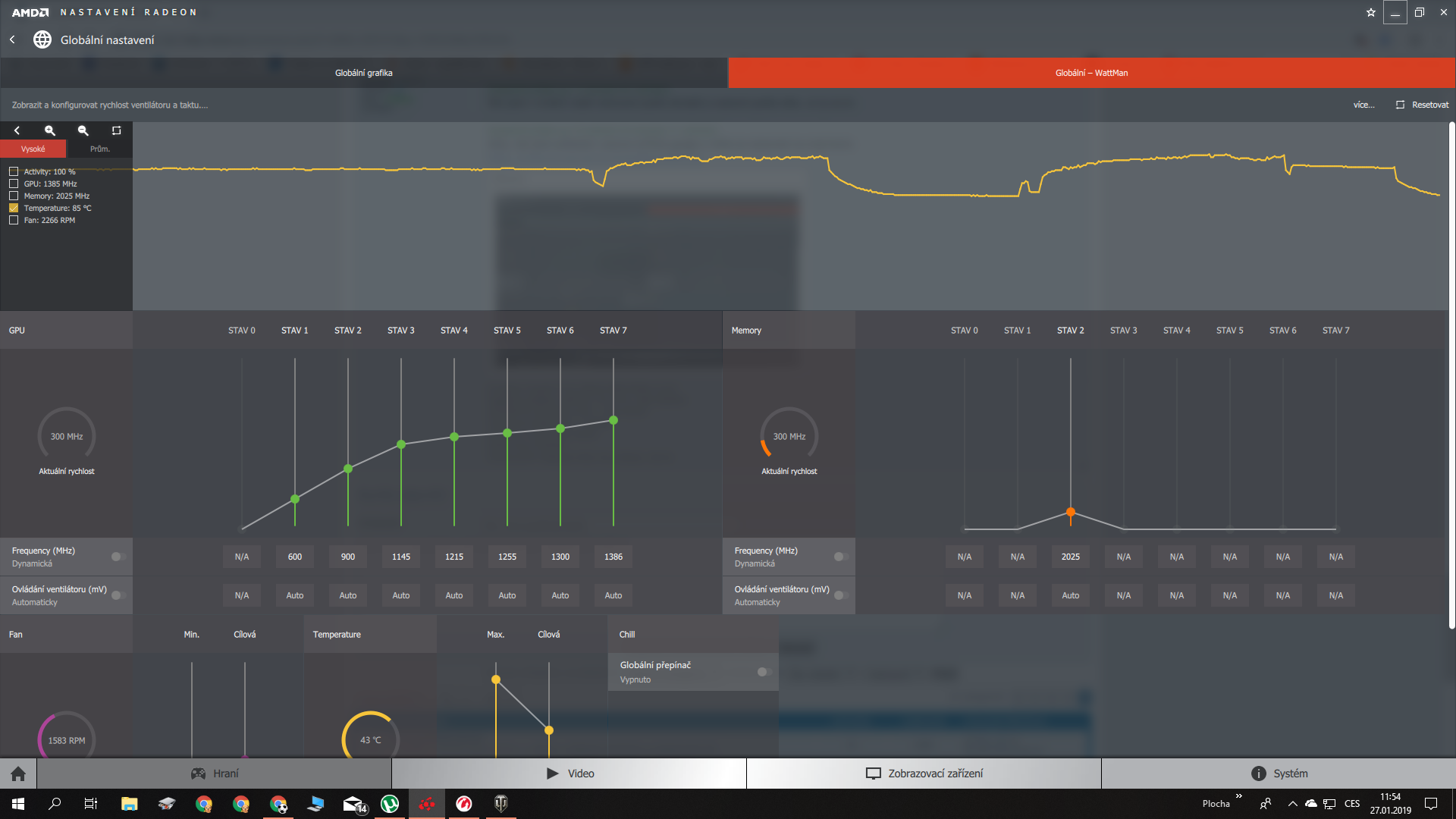 přes 80° bych to moc dlouhodobě teda nehnal. Prvně bych stáhnul určitě novou verzi ovladačů, protože ten posuvník co tam máš, byl hodně verzí zpět. Až stáhneš ovladače hod pak screen ten spoednější části wattmana, řeknu ti co by mohlo ještě pomoct.