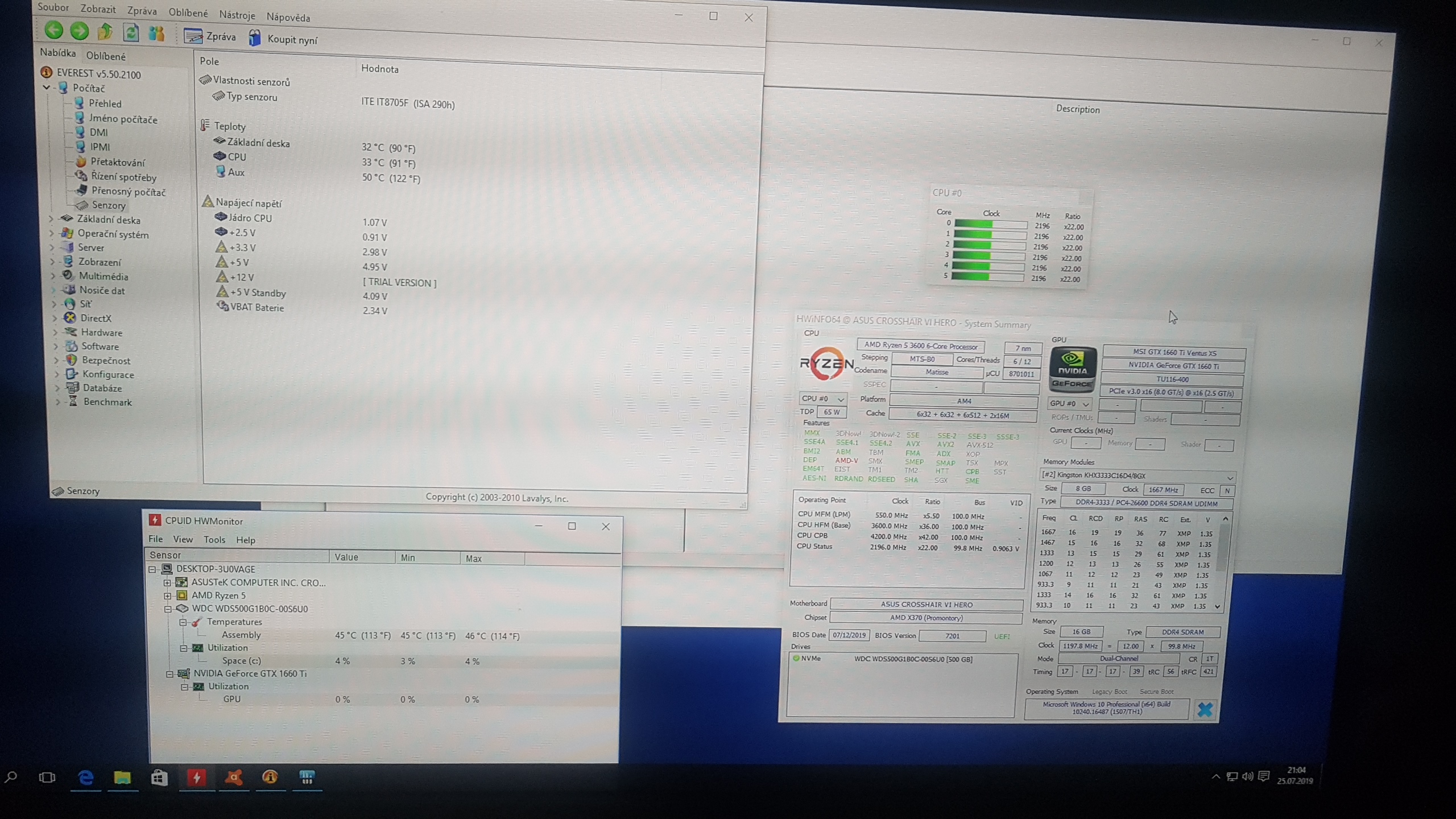 Windows 11 PRO 64bit, Základní deska: Asus Strix B550-F Gaming, CPU: AMD Ryzen 5 5600, Grafická karta: ASUS TUF GAMING GeForce RTX 3060 Ti O8G GDDR6X, Ram: Kingston FURY 32GB KIT DDR4 3200MHz CL16, Disk: Kingston KC3000 NVMe 1TB, Chladič: Endorfy Fera 5, Zdroj: MSI MPG A650GF