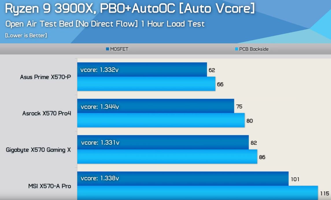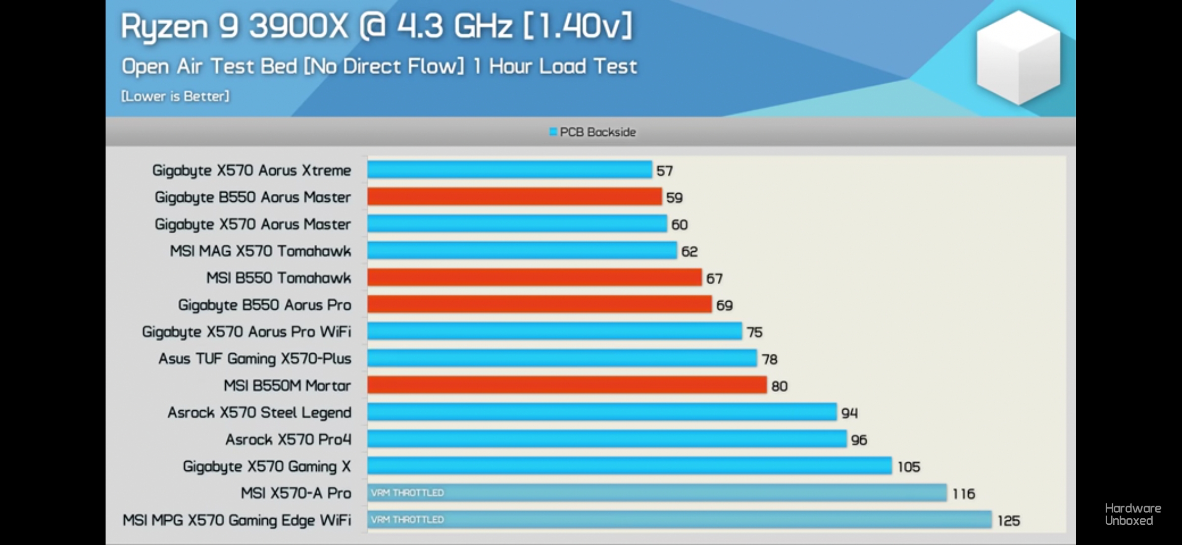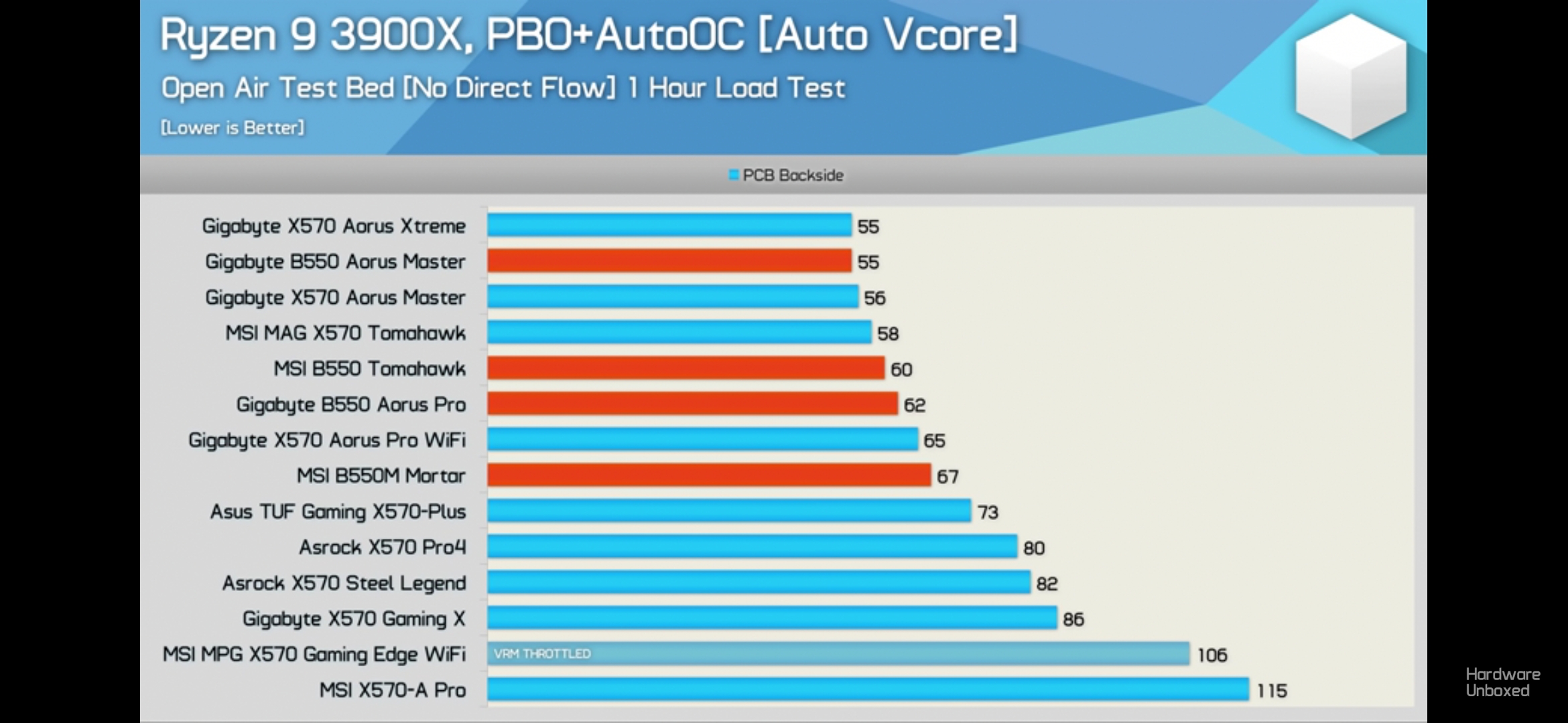 Prime P je ale horší než třeba ten Tomahawk. Neporazila ho ani X570 TUF Gaming Plus, což je ještě o něco lepší VRM. Jako oproti třeba B450 Mortaru to je opravdu o parník jinde.