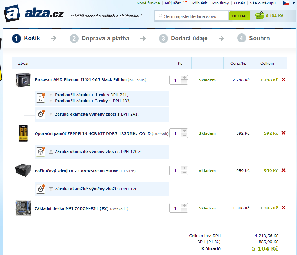 Je tam myslím napsané kdy to přijde popřípadě se podívej kde maj vysvětlené způsoby dopravy. To HDD z notebooku je SATA? pokud jo tak by to mělo být bez problémů kompatibilní. Jinak pokud plánuješ koupit grafiku už za měsíc vzal bych to takto http://www.alfacomp.cz/php/basket.php?i ... 25011PF001 a potom koupil HD7850, nebo bych vzal tu sestavu s i5 (máš tam dobrý CPU který ti bude ještě dlouho stačit), ale budeš se muset uskromnit na grafice a vzít "jen" HD7770.