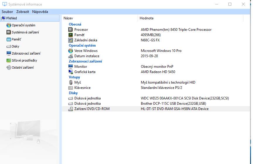 Zde je specifikace. Nepomohlo ani přeinstalování a upgrade na win10.