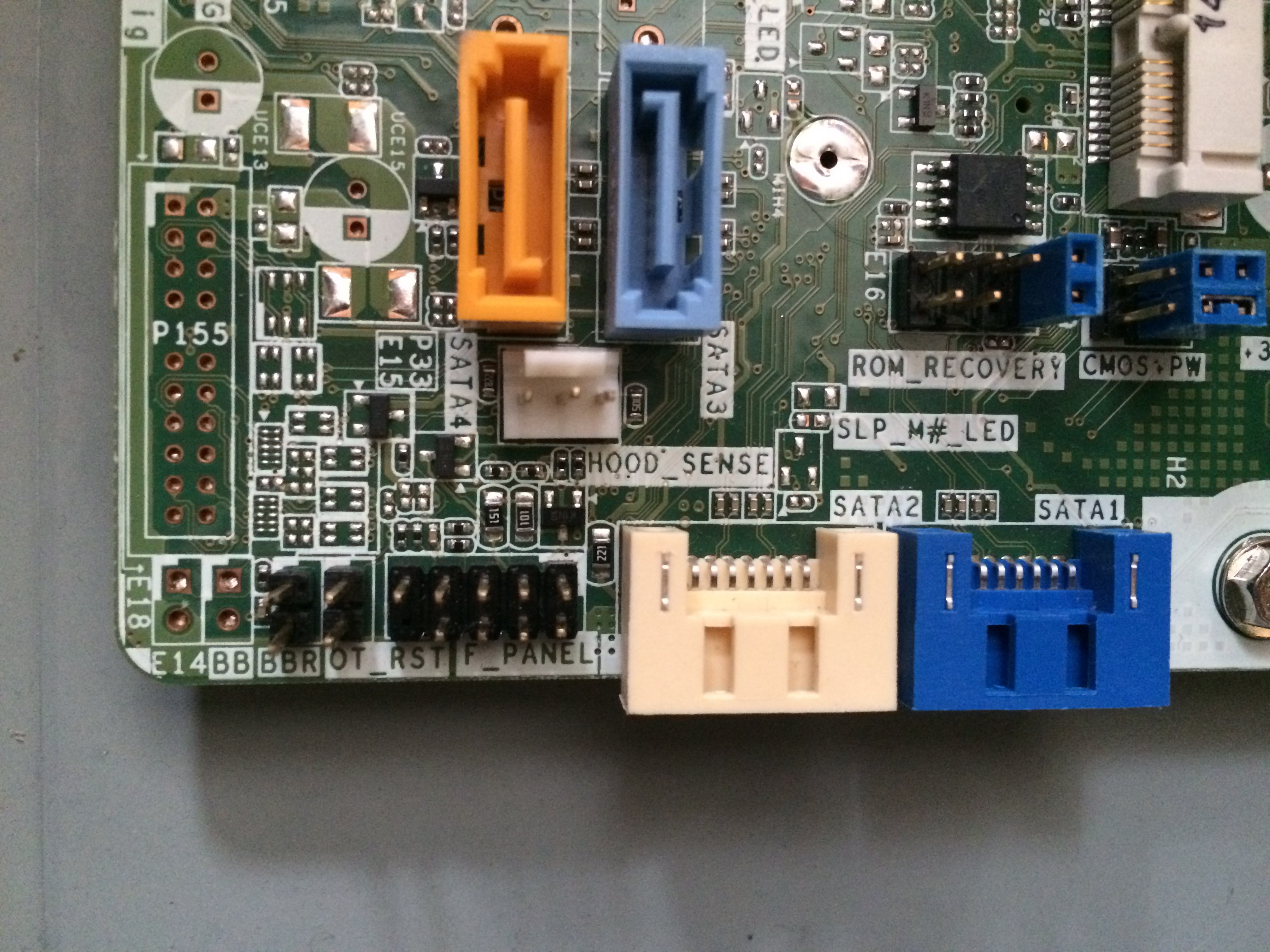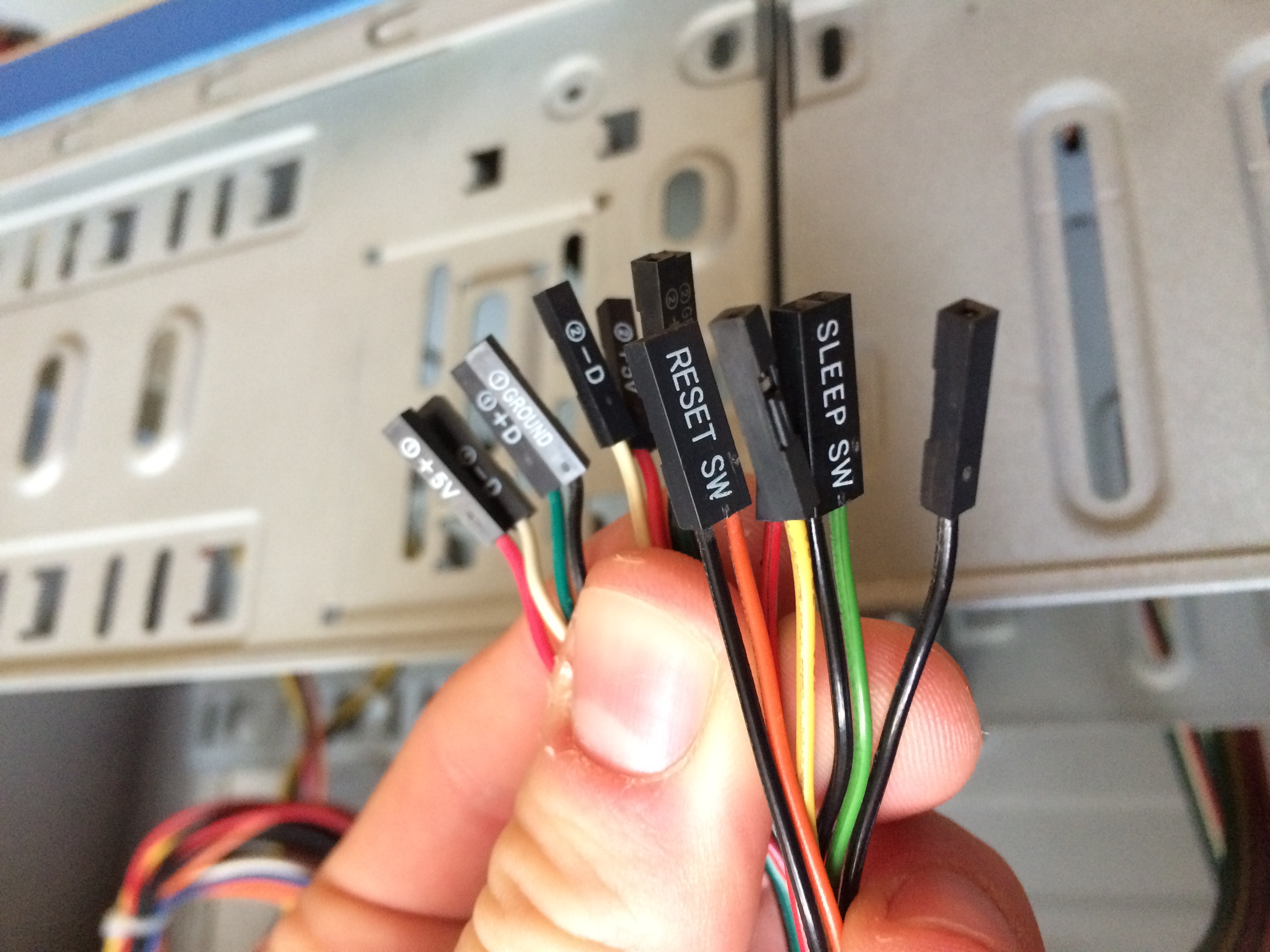 Na zapojení zapnutí a vypnutí počítače slouží konektor SLEEP SW.Musíš ho zkoušet postupně do pinů okolo F panel dokud se to nespustí. Zapojení předního USB (to zapojíš do pinů F USB 1 na desce)je na obrázku níže :