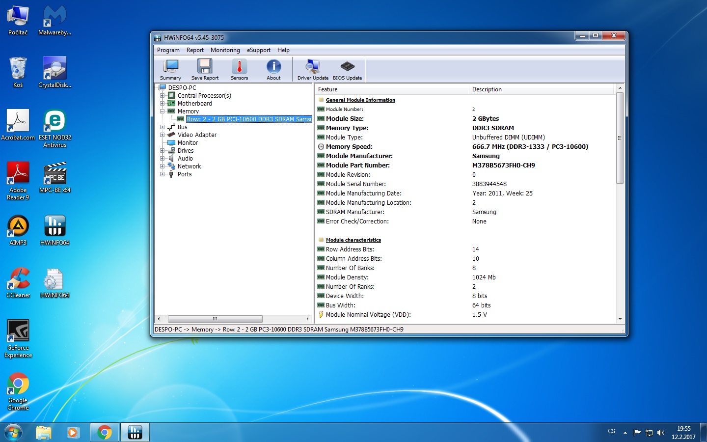 Zdravím odešla mi paměť DD3 4 GB, teď mám jen 2 GB konkrétně tuhle (screen v příloze). Našel jsem na aukru použitou 4 GB za celkem rozumnou cenu, chci se vás zeptat jestli bude sedět do mé MB (screen v příloze). tady je odkaz http://aukro.cz/samsung-4gb-ram-ddr3-ec ... 43468.html