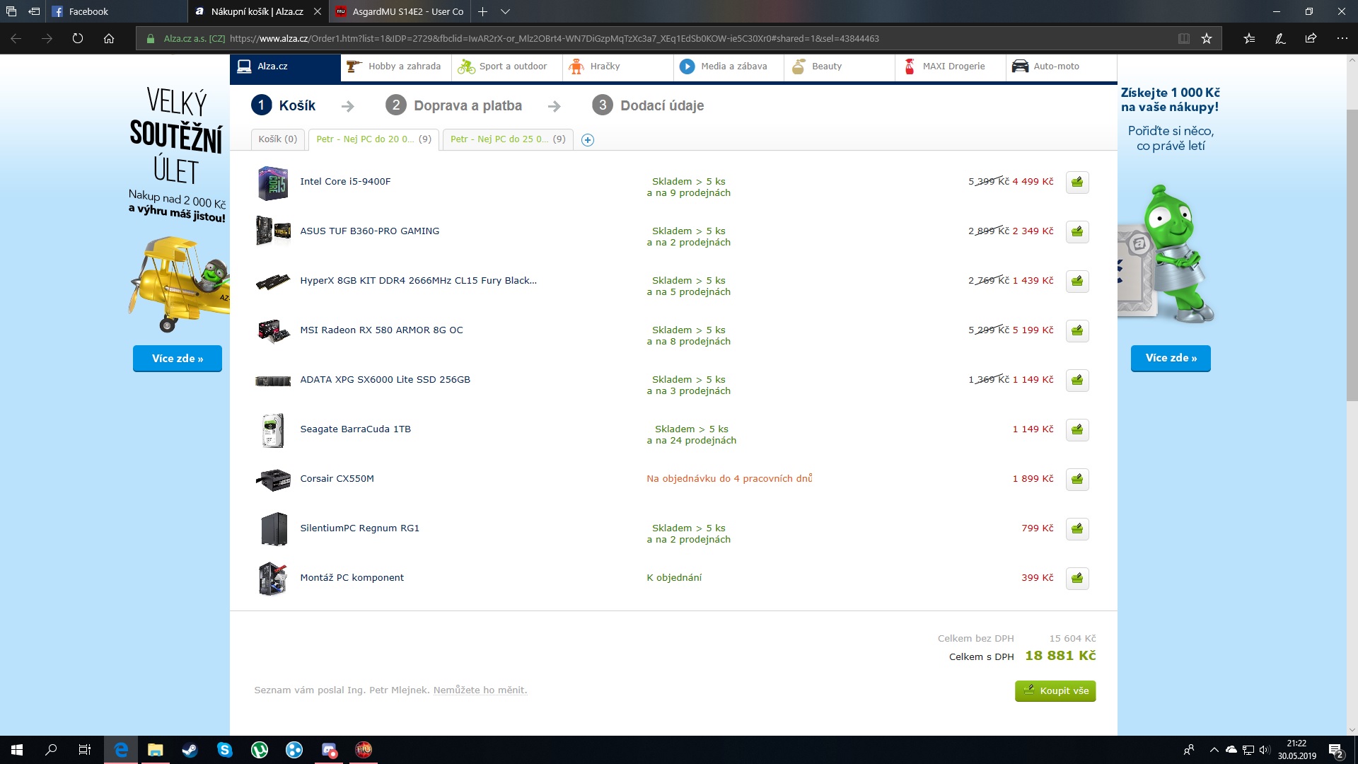 Poradil jsem mu zatim sestavu, co jsem nasel na strankach cena-vykon a vypada to podle me dost slusne, za ty penize... viz priloha