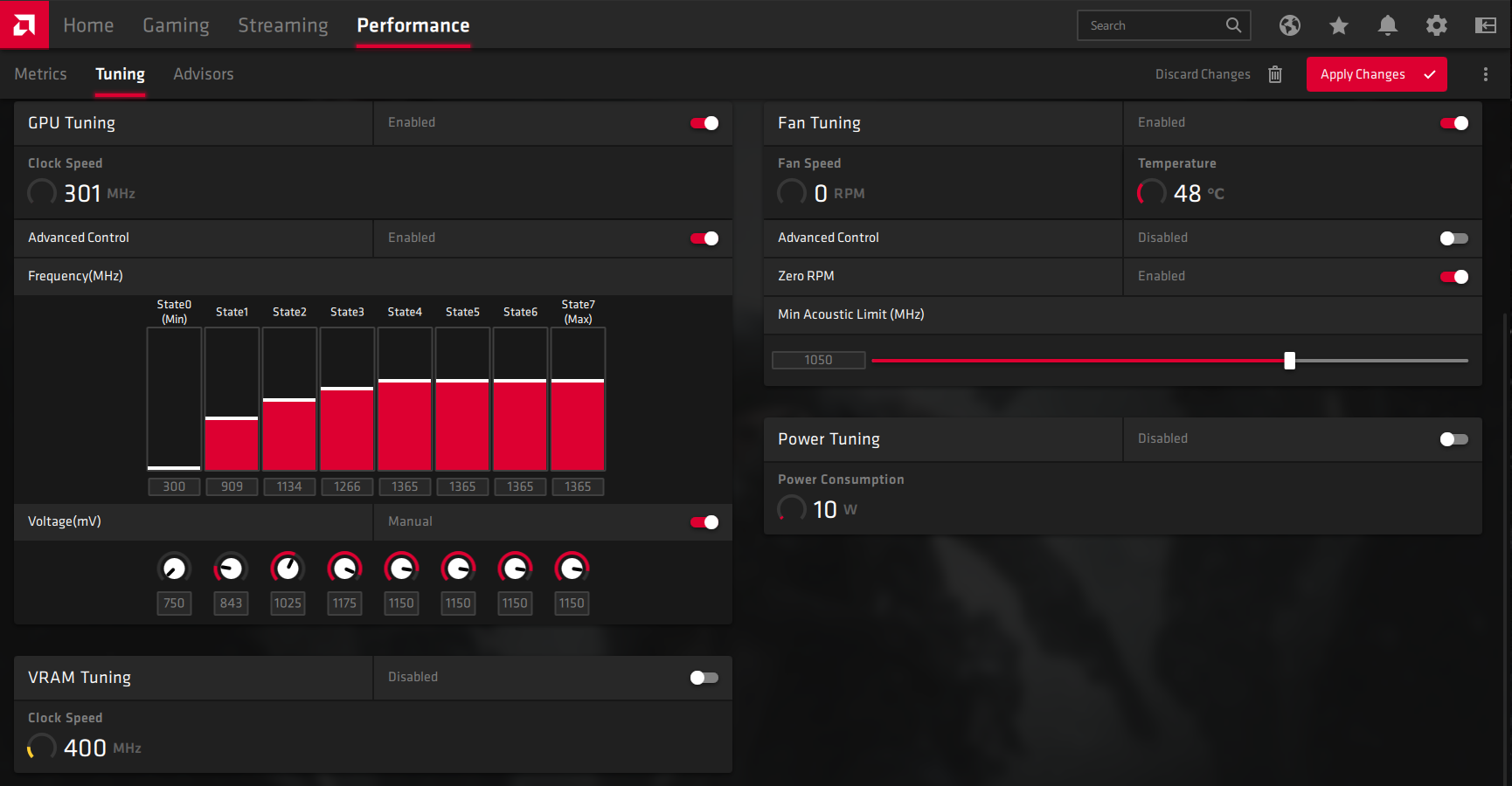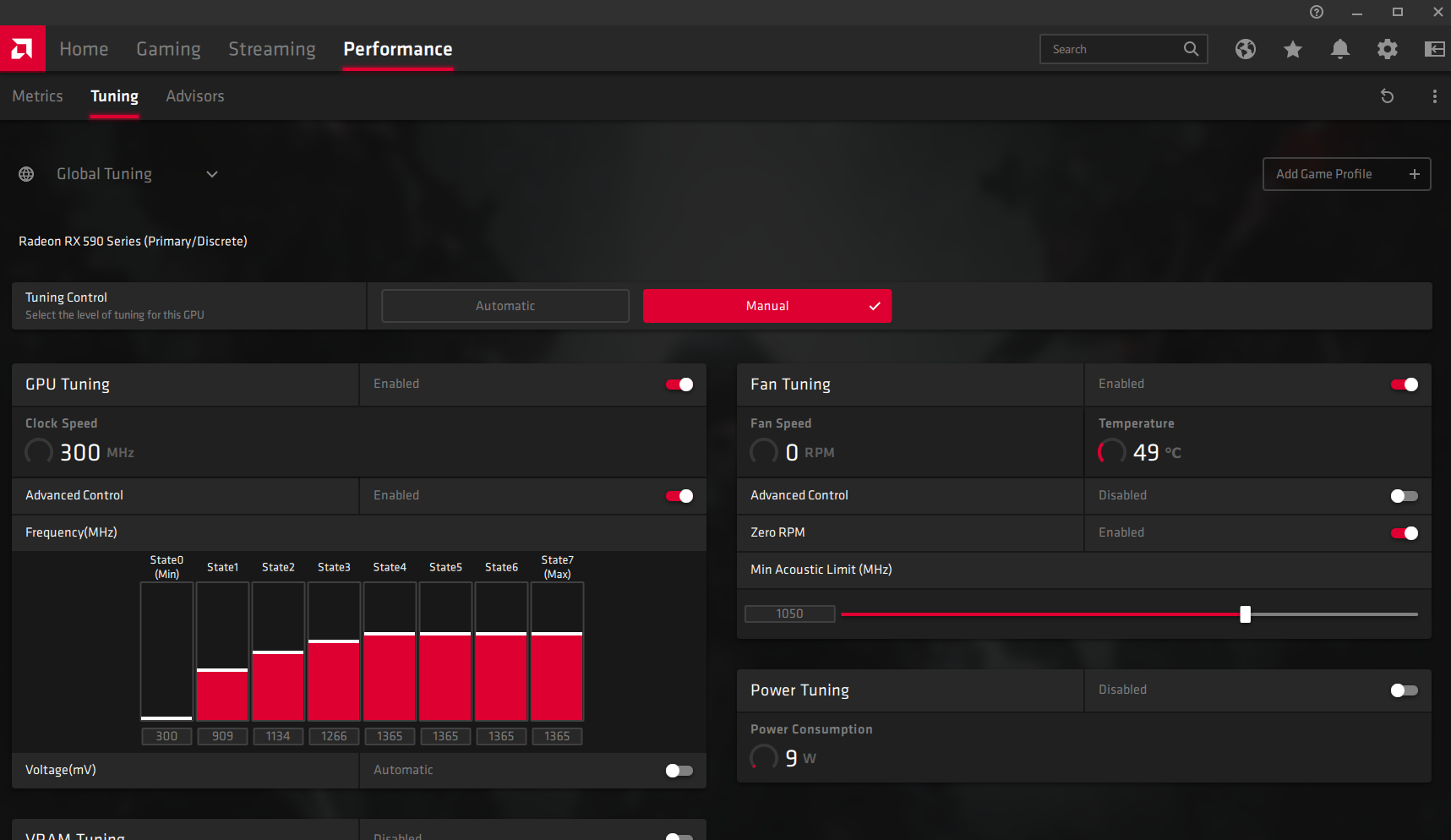 Na obrázku není vidět jaké máš nastaveno napětí. Každopádně můžeš zkusit nastavit hodnoty,tak jako na obrázku níže a otestovat. Takhle to mám nastaveno a odzkoušeno s RX 580.