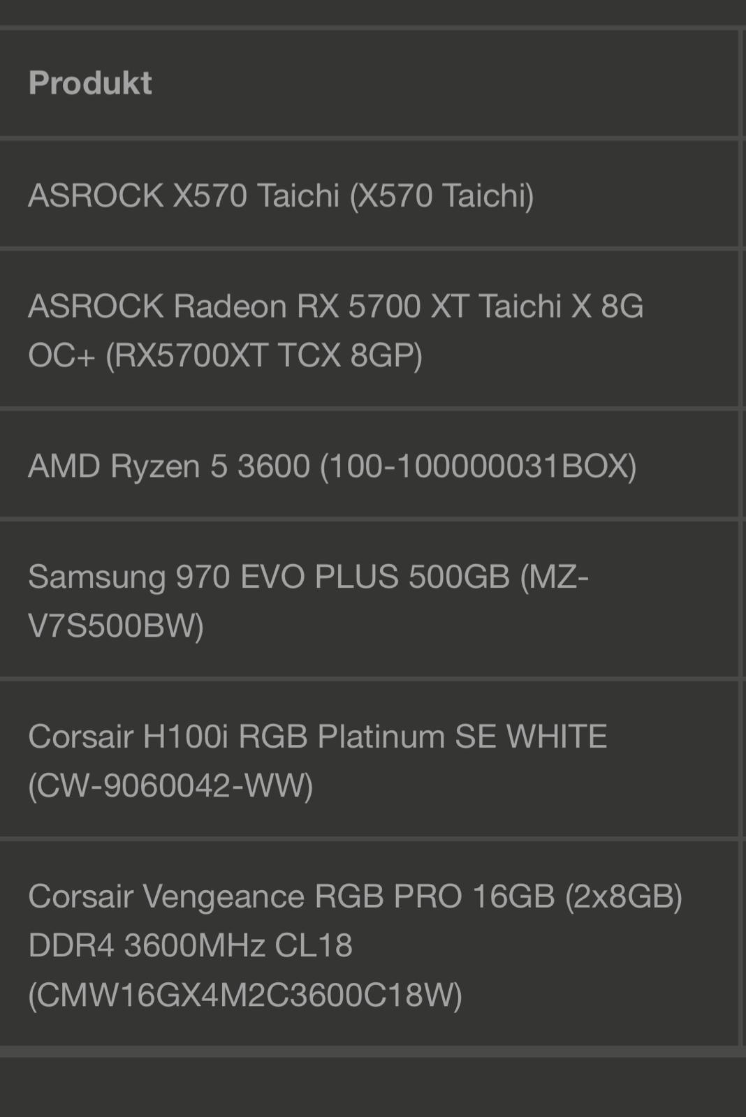 Ryzen 7 3700X, MSI B450 Gaming Pro Carbon AC, BeQuiet! Dark Rock 4, 64GB Patriot Viper Steel DDR4 3600Mhz, Sapphire Pulse Radeon RX 5700 8GB, Samsung 970 Evo 500GB NVMe, 2 x Crucial MX500 1 TB SATA, Seasonic Focus GX 650W, Fractal Define S, 4 x BeQuiet! Pure Wings 2 140mm, 27" Samsung S27R750 VA 144Hz, Logitech G Pro Wireless, Logitech G213, HyperX Cloud Flight