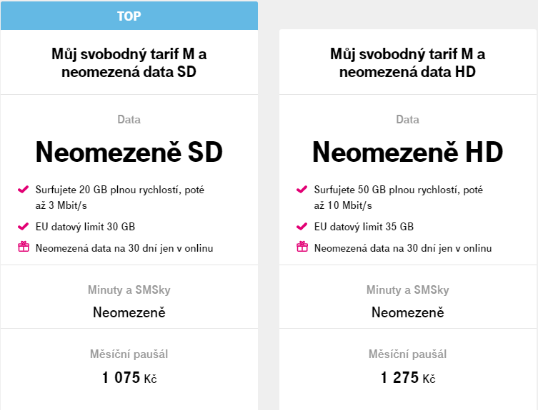 Nicmene, tarify se jmenuji "Neomezene SD" a "Neomezene HD"