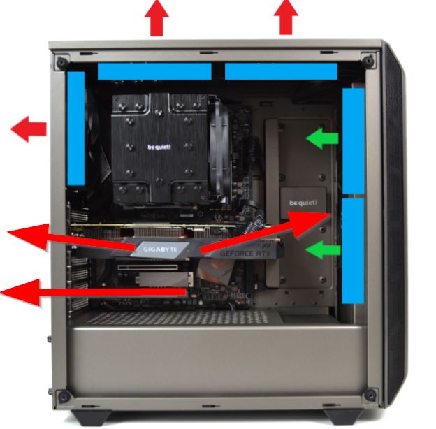 Dole mám zdroj Corsair RM650x, ale ten je zakrytován. Zatím mé pocity z hraní je ten, že teploty se o trošku snížily (dejme tomu o 2-3 °C oproti původní konfiguraci, točím menší otáčky na horních 2 ks ventilátorů. Ale asi bude chtít dále ladit a ladit...