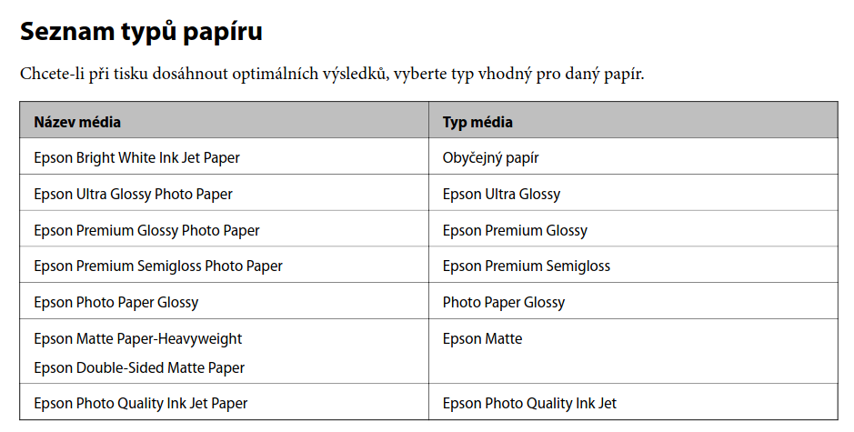 Někteří výrobci (typicky Epson) neuvádějí povolenou gramáž papíru.