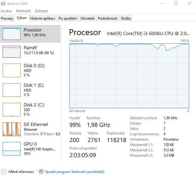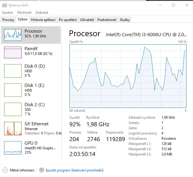 Chápu to tak, že mi přidání RAM nepomůže. Že více RAM procesoru nijak nepomůže. Možná rychlejší RAM by pomohla? Nebo to na RAM vůbec nemá vliv? Prostě je slabý CPU, ale to hádám vyměnit nemůžu, protože je nevyměnitelný, možná se zkusit podívat, zda někdo neprodává jen základní desku s i5, ale to bude hádám z bláta do louže, chce to už po 3 letech koupit nový notebook. Holt příště nebudu na CPU šetřit. Nebo nebudu kupovat notebook, který nemá upgradovatelné CPU.
