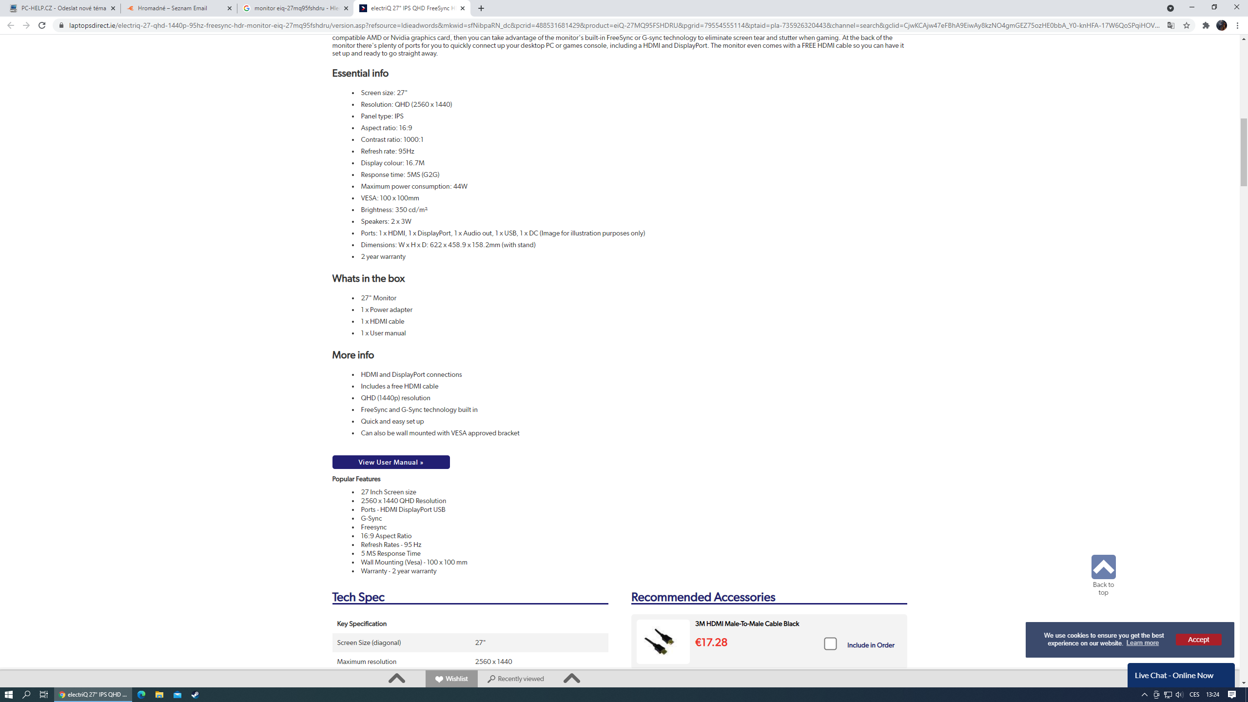 QHD jsem nechtěl protože vyžaduje u každé hry dost velký výkon a tím pádem bych hrál na střední detaily. Druhá možnost byla hrát na nejvyšší detaily za cenu trochu nižšího rozlišení a rozhodl jsem se tedy pro druhou variantu, navíc filmy v QHD nesleduji a upřímně si ani nemyslím, že na tak malém monitoru je to nějaký velký rozdíl.