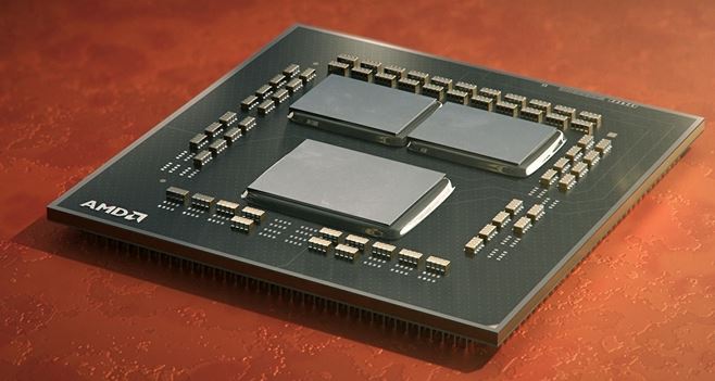 na jedné straně cpu je šipka, podle které se osazuje do patice, na opačném rohu je čiplet s jádry ... tam to bude