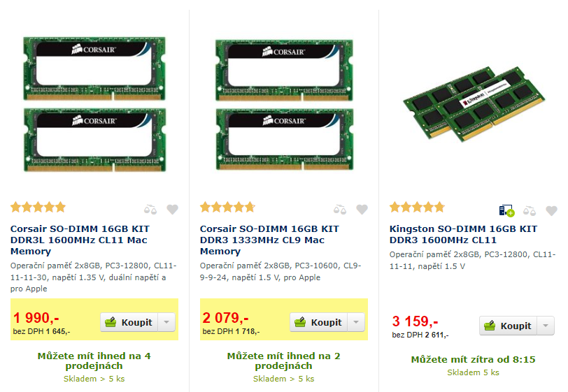 No právěže jsou levnější, za set 16GB "pro apple" dám dva tisíce viz odkaz, pokud bych chtěl obyčejnej set "ne pro apple", tak mi tři tisíce nestačej