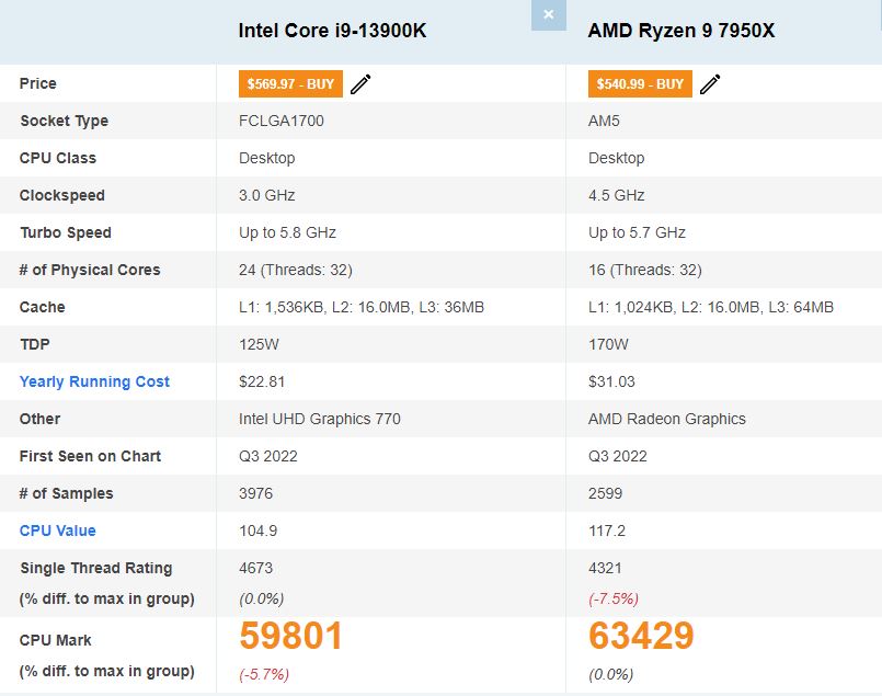 Aha, děkuji. Je nějaký AMD ekvivalent k k i9-13900k, který se mu vyrovná cenou a výkonem? Když tak projíždím benchmark, tak to na mě působí, že není.