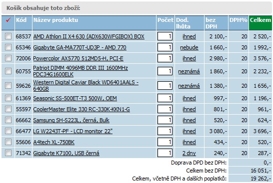 Celkem to dělá 19 262,- Kč, je to dost slušnej herní stroj a neboj alfacomp je levnější takže tam se dostaneš pod 19 aji se složením si myslím a kdyby tam nějaká součást nebyla tak se ozvi a já ti tam dohledám alterativu