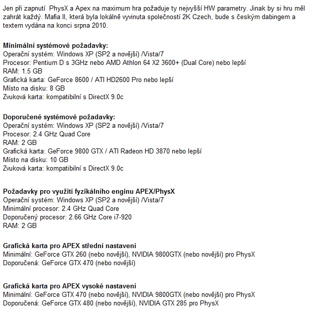 Já jen komentoval co říká výrobce a ne praktické zkušenosti. Jinak chce pomoci s proceosrem a ne s Mafií II