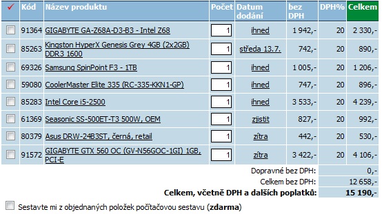 Ta sestava s Core i5 vypadá hodně dobře, ba dokonce podstatně lépe něž na původním AMD. Nezkoušel jsem cenu s i5
