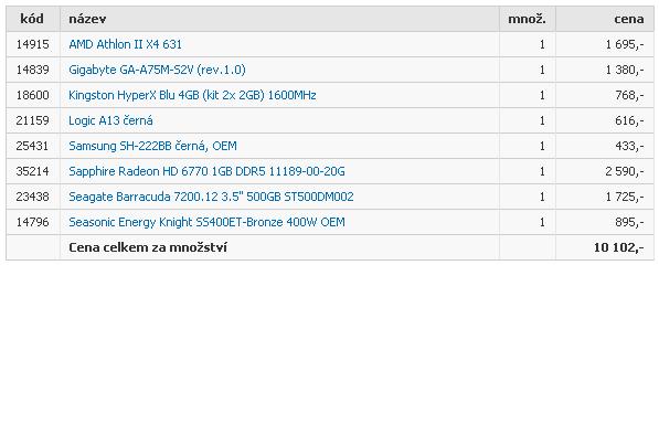 Bylo to s kámošem domluvené, nicméně nakonec přišel s úplně jinou sestavou, protože ho prodavač přesvědčil že ten CPU s integrovanou grafikou je lepší než co navrhl Spyke.