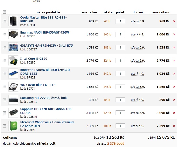 Dobrý den mohly by jste mi někdo na stránkách http://www.czc.cz/ najít a vložit do košíku všechny komponenty co má v sobě počítač HAL3000 Devil 9318, PCHS0661 prosím? :)