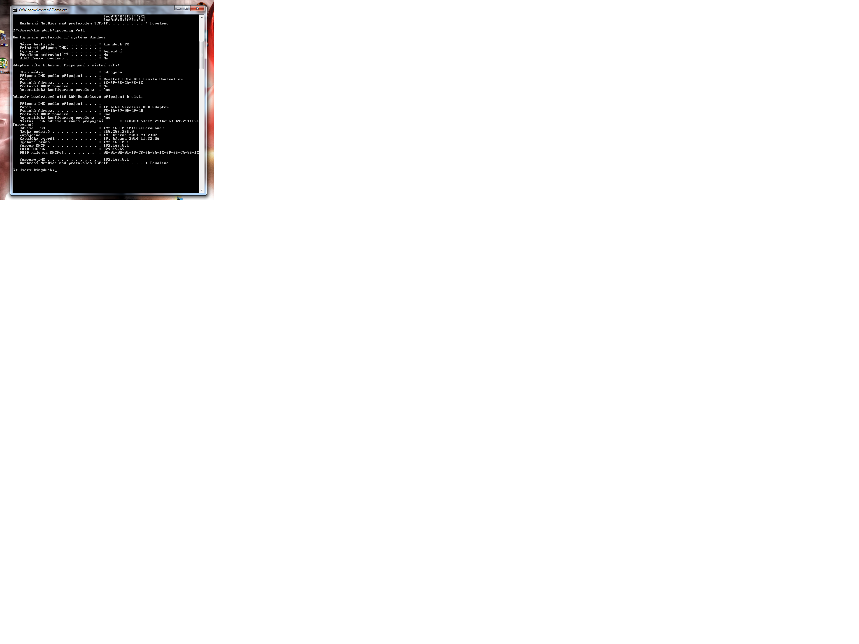 ručně jsem nastavil do pc k vlastnosti adapteru iv4 a ipconfig /all mě vyhodilo toto viz. příloha