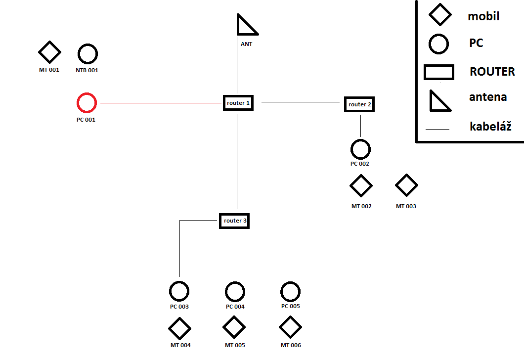 Když chci z PC 002 do routeru 1, tak se dostanu bez jakýchkoliv problémů, ale k routeru 3 musím chodit a připojit se na něj kabelelem, nebo se přihlásit na jeho wifi. Ani mapa sítě ho nevidí.