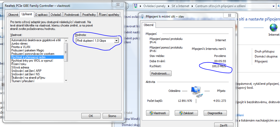 Změna rychlosti síťové karty 10Mbps -> 1Gbps síťovka RTL8168  Vyřešeno