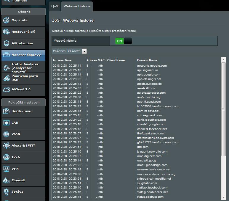 Často dotazovaná vlastnost u routerů je i monitoring navštívených internetových stránek. Pro tento router to není žádný problém.