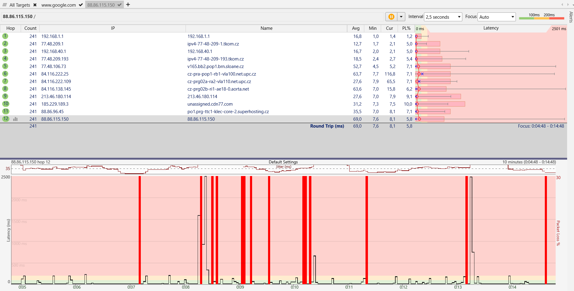 už přes týden mám problém s pingem, kdy má normálně hodnotu okolo 20ms, ale pravidelně to padá i přes 200ms.