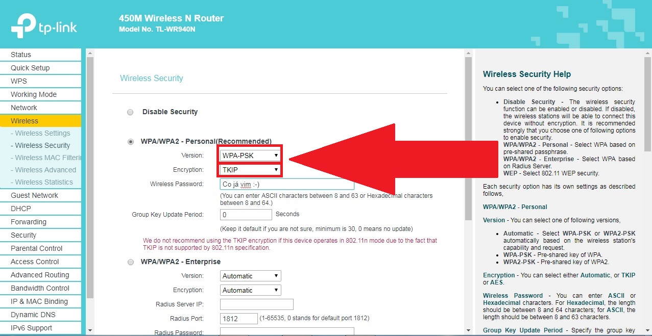 5.) Přepni se z Wireless Security na Wireless Settings. Omrkni "Mode:", zda nejde nastavit jen b/g, nebo třeba g-only. Pokud ne, tak nevadí, ale pokud to bude možné, tak to přepni. Dále pod tím nastav: "Channel Width: Auto" a "Channel: 6".