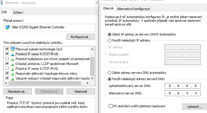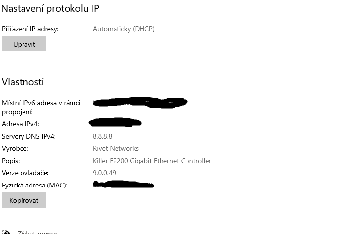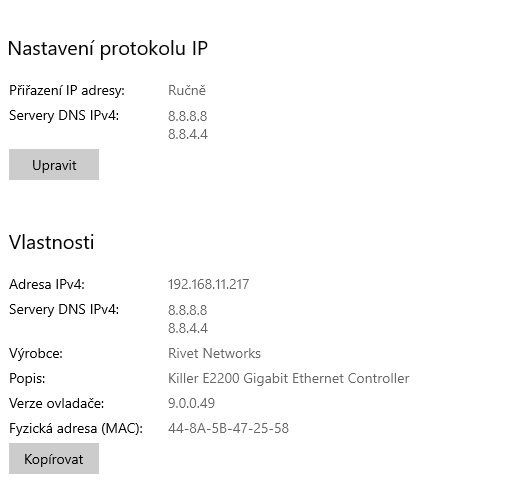 - zda je v nastavení síťové karty. Pokud ano, zatrhni volba DNS automaticky. Znovu ipconfig -all a výpis dej sem.