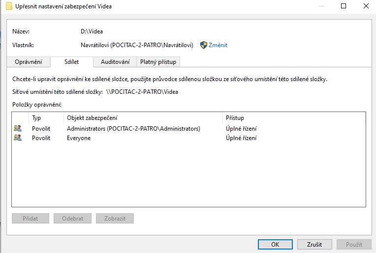 slozky v PC ? Opravneni na sdileni je nastaveno shodne ?