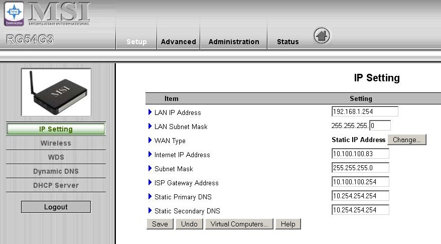 Dobrý večer, řeším problém s velmi pomalým připojením k internetu. Připojení bezdrátové: anténa - AP (WL-1120AP) - router - pc (vše propojeno kabelem). Do setupu routeru se dostanu (nastavení v příloze), ale nejde se mi dostat do setupu AP (výchozí IP 192.168.100.252 nefunguje). Chci zkusit AP restartovat do továrního nastavení, ale nejsem si jistý jestli pak budu umět AP nastavit. Od poskytovatele mám ve smlouvě IP, masku, bránu a DNS. Teoreticky bych ten router ani nepotřeboval (je to pouze pro jedno pc), ale když zapojím utp kabel od AP přímo do Pc tak internet nejde - co je třeba přenastavit aby to šlo bez routeru?
