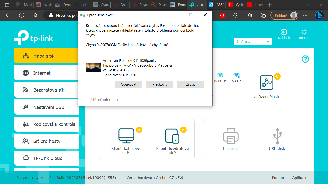 Jasně. Jen pro jistotu - k tomuto: "Prostě víc jak 14 G na NAS neprotlačím ani přes SMB a když to vemu i přes aplikaci Asustor Control center ve Win 10 tak těch 20G se kopíruje jen rychlostí 3 MB/s a při 99 % to spadne."