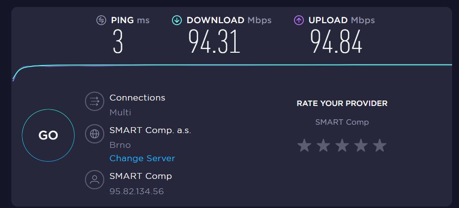 Ták,posielam ako to vypadá s novým routrom a som mega mega moc prekvapený, vôbec som nečakal také zlepšenie, úplne čumím, že ako to je možné. S nový routrom wifi cez 2 panelové steny, vzdialenosť medzi zariadeniami asi 10m a rýchlosť takmer 100/100.