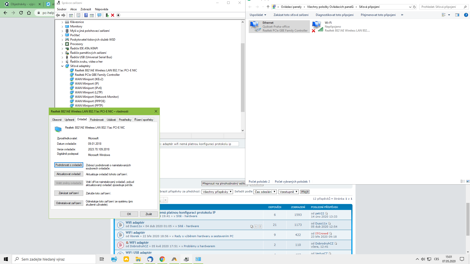 rhsCZ píše:Zmačknou klávesovou zkratku win+R objeví se okno "spustit" tam napsat "eventvwr.msc" (bez uvozovek) a dát enter. Ukáže se okno "Prohlížeč událostí". v tom okně vlevo je položka "Protokoly systému Windows" a pro rozbalení tam je položka "Systém", na tu položku se klikne pravým tlačítkem a bude tam položka "Uložit všechny události jako..." tak si to uložit např. na plochu a nahrát sem jako přílohu. Druhá věc je, že dáte klaves. zkratku jako na začátku, ale napíšete "devmgmt.msc" a objeví se okno tam rozkliknete Síťové adaptéry najdete ten wifi adaptér, dáte na něj pravý klik a dáte Vlastnosti a objeví se nové okno a tam vyberte záložku ovladač a pošlete screen obrazovky. Doufám, že to je trošku srozumitelné.