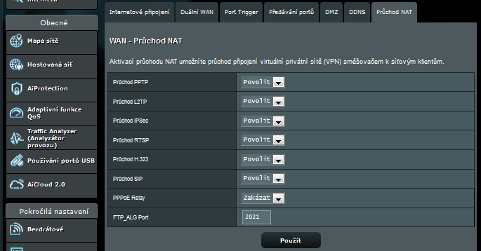 Port trigger a předávání portů využijete ke směrování portů např. na FTP, kamery atd.