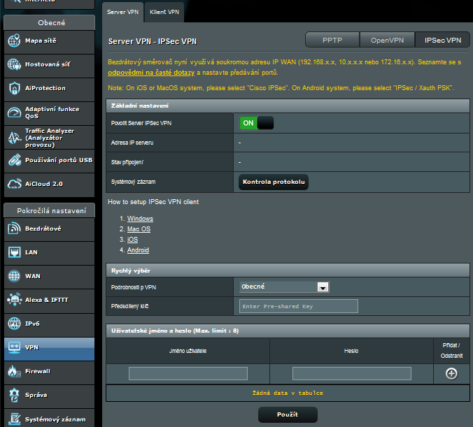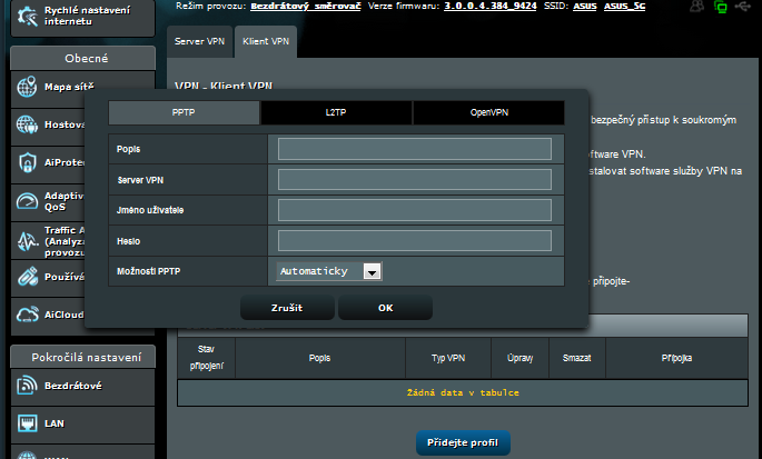 VPN router podporuje jak režim klienta, tak i serveru. U klienta PPTP, L2TP, OpenVPN, u serveru i IPsec VPN.