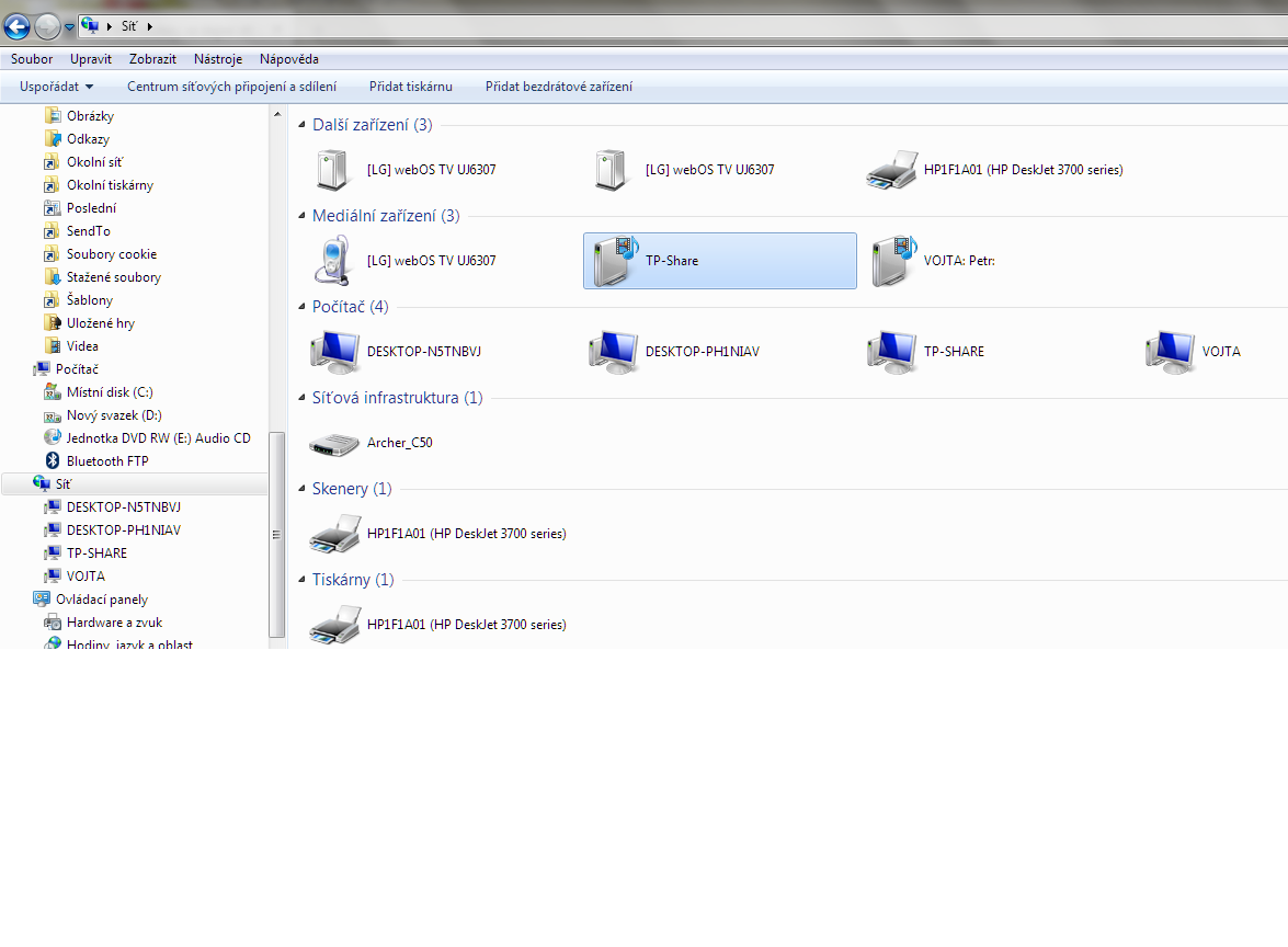 A v tom screenu vidím síťové zařízení TP-Share, což by měla být ona.