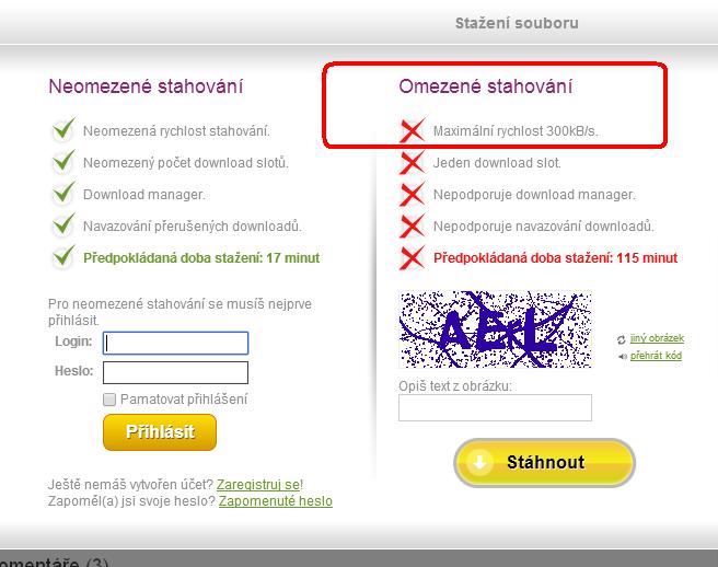 Uloz.to omezuje rychlost stahovani pro neplatici uzivatele, ve spicce to ale muze jit jakkoliv pomalu.