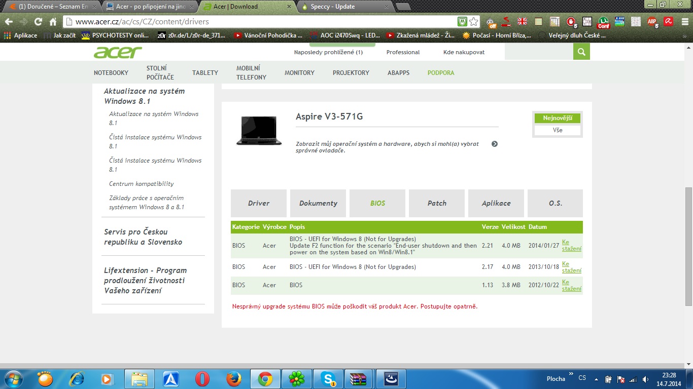 Napadlo mě, zdali to nemůže způsobovat špatný BIOS... On ten notebook celkově zlobí. Byl přeinstalován z Windows 8. Nevím, který BIOS je správný a zdali bych neměl provést downgrade. (Viz screen.) U některých BIOSů něco píší o Windowsu 8...