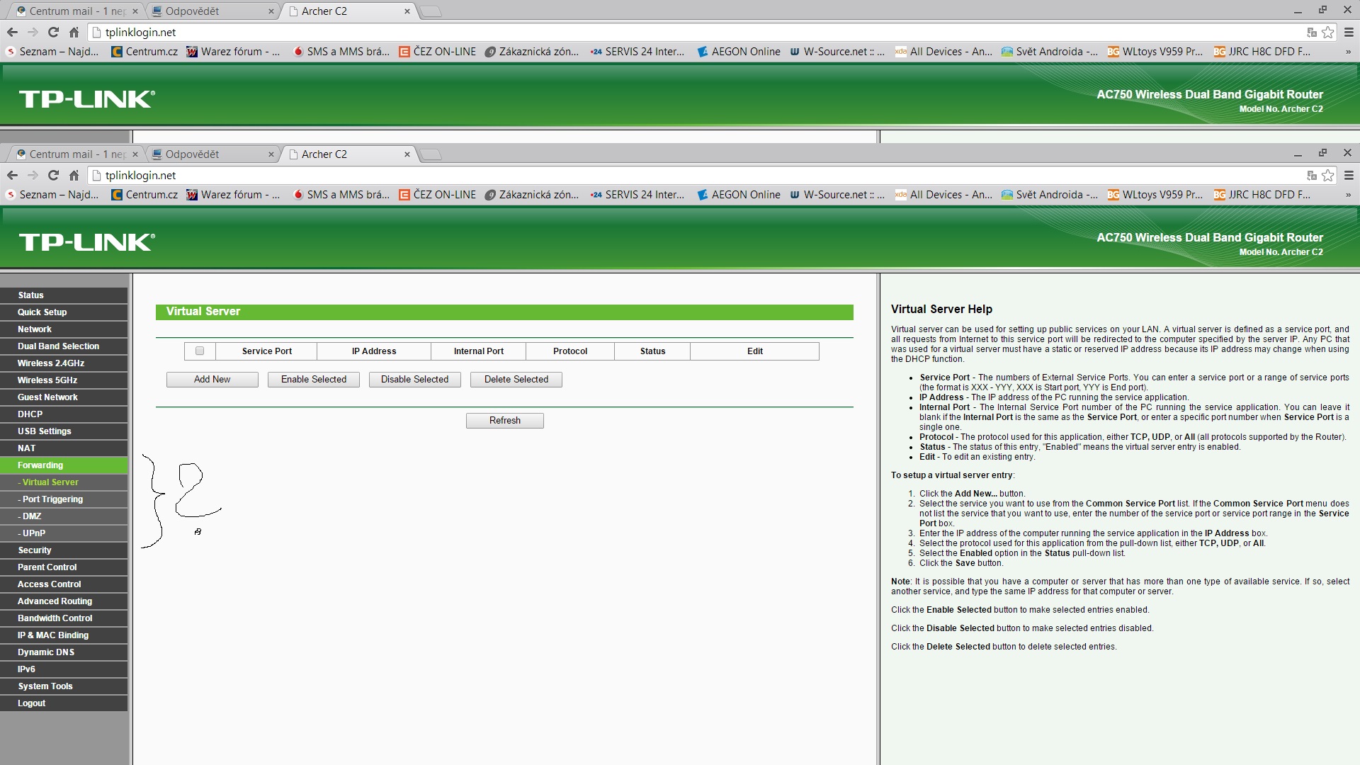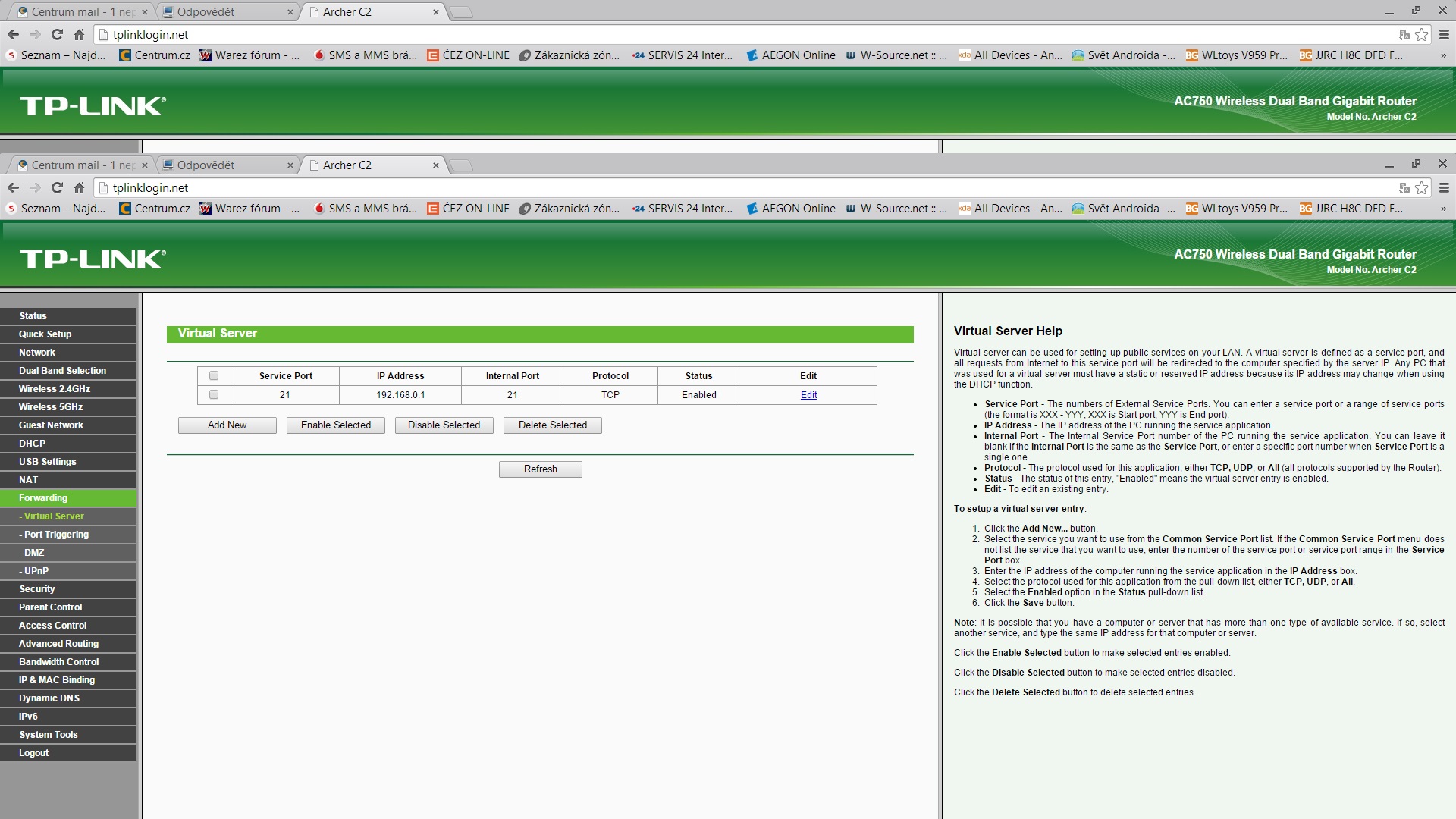 PORT jsem neměnil. Jenom upozorním, že pokud jsem v nastavení USB - ftp serveru zaškrtl přístup z internetu, zobrazila se mi jakási WAN IP (viz. obrázek 1) Pak je potřeba nastavit PORT FORWARD ale kde (obrázek č. 2) Předpokládám že hned první nabídka, tj. FORWARDING - VIRTUAL SERVER. A tam to nastavím jak?? PORT 21, IP bude co?? (ta WAN IP co se mi zobrazila v nastavení USB FTP serveru) nebo IP LAN routeru jak si psal, tzn. 162.168.0.1?? Nebo tu veřejnou IP??