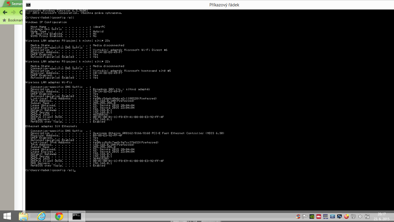Dej sem vypis udaju ziskanych z DHCP zvlast pres LAN a zvlast pres wifi.