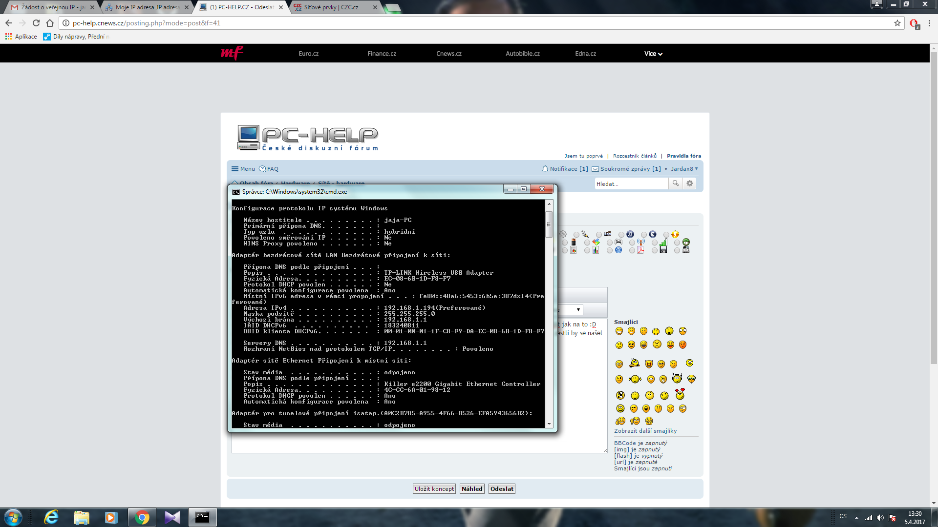 porty mi to hlásí zavřené.. nemůže to být tím že mám v nastavení WAN routeru dynamickou IP ? přitom na mojeip.cz mi to hlásí úplně jinou..
