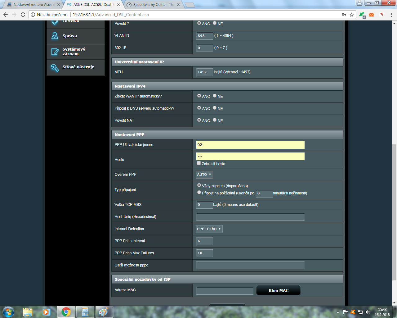 mám problém s novým routerem. Koupil jsem Asus dsl-ac52u jako náhradu za originál od O2 Zyxel VMG1312, který absolutně nestíhal, vzhledem k tomu že přes něj jely 2 O2tv, počítač, NAS, notebooky na wifi, mobily, xbox.. prostě dost věcí.