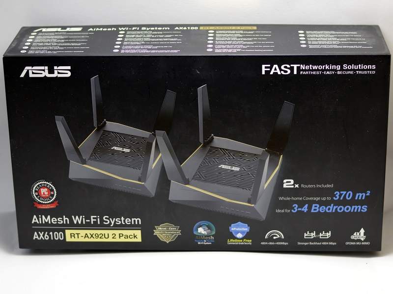 ASUS AiMesh AX6100 je první mesh systém, který podporuje nový standart Wi-Fi 6 neboli 802.11ax. V balení přichází dva routery ASUS RT-AX92U s podporou topologie Mesh díky, které jsou schopny routery pokrýt plochu o velikosti až 370 metrů čtverečních a tím omezit počet mrtvých míst (bez, či se slabým signálem) ve větších rodinných domech.