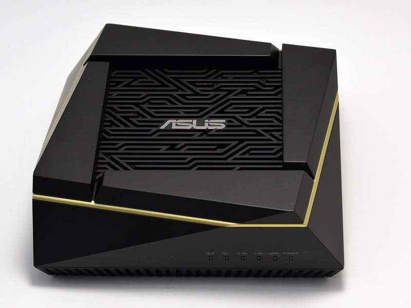 Systém ASUS AiMesh AX6100 je tvořen dvěma zařízeními (routery) RT-AX92U, jedná se o malé designově pěkné „krabičky“ se základnou, která má blíže ke čtvercovému tvaru. Povrch zařízení je z černého matného plastu se zlatou linkou po celém obvodu. Na vrchu zařízení se nachází čtyři sklopné antény, které však nelze nijak natočit či jakkoli aretovat v různých polohách (snad jen pomocí lepící pásky).