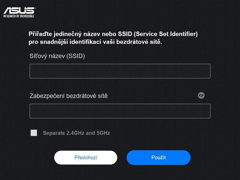 Následuje nastavení síťového názvu (Wi-Fi) sítě, přístupového hesla a administrátorské jméno s heslem pro přístup do nastavení routeru.