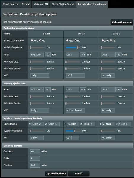 Co nebývá zvykem u levných routerů je možnost konfigurace tzv. „Pravidla chytrého připojení“. V podstatě jde o řadu pravidel pro bezdrátová připojení, mezi nimiž se nachází i pravidlo při jaké nejnižší úrovni signálu má router zařízení odpojit, což je vhodné například v lokaci s vícero bezdrátovými AP, aby zařízení (chytrý telefon, notebook) nebyl za každou cenu připojen k routeru s velmi nízkým signálem místo toho, aby se připojil na AP s lepším signálem.